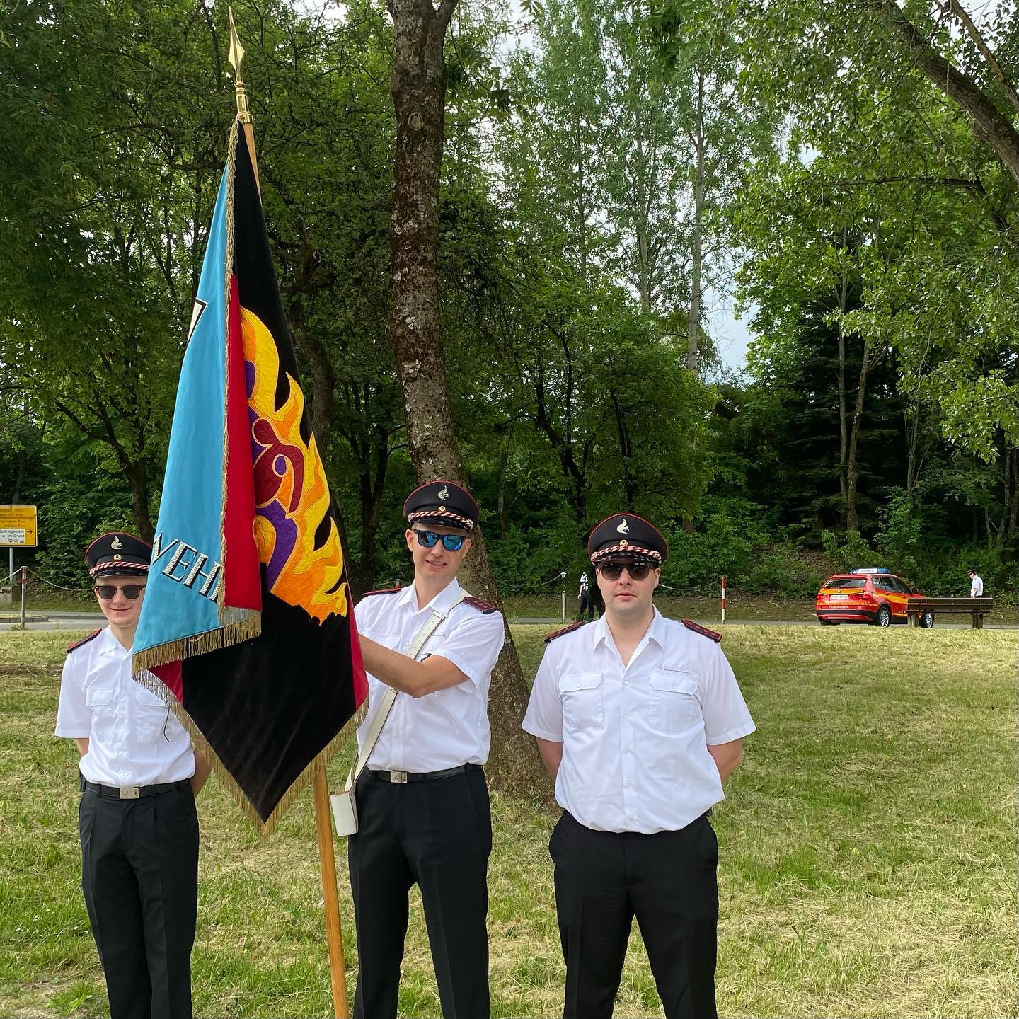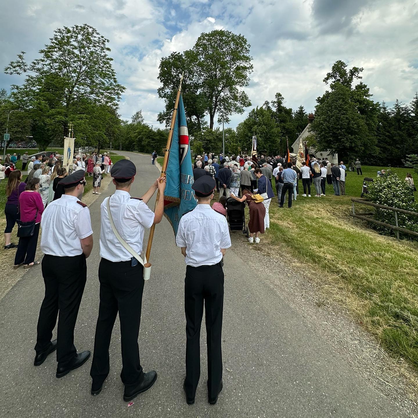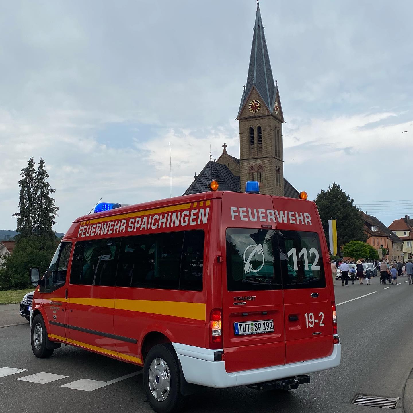 Genauso wie von einigen Spaichinger Vereinen war zum einen eine Fahnenabordnung der Feuerwehr Spaichingen Teil der Prozession. Daneben kümmerte sich die Feuerwehr um den Aufbau und Transport der Lautsprecheranlage an den einzelnen Altären der Prozession.