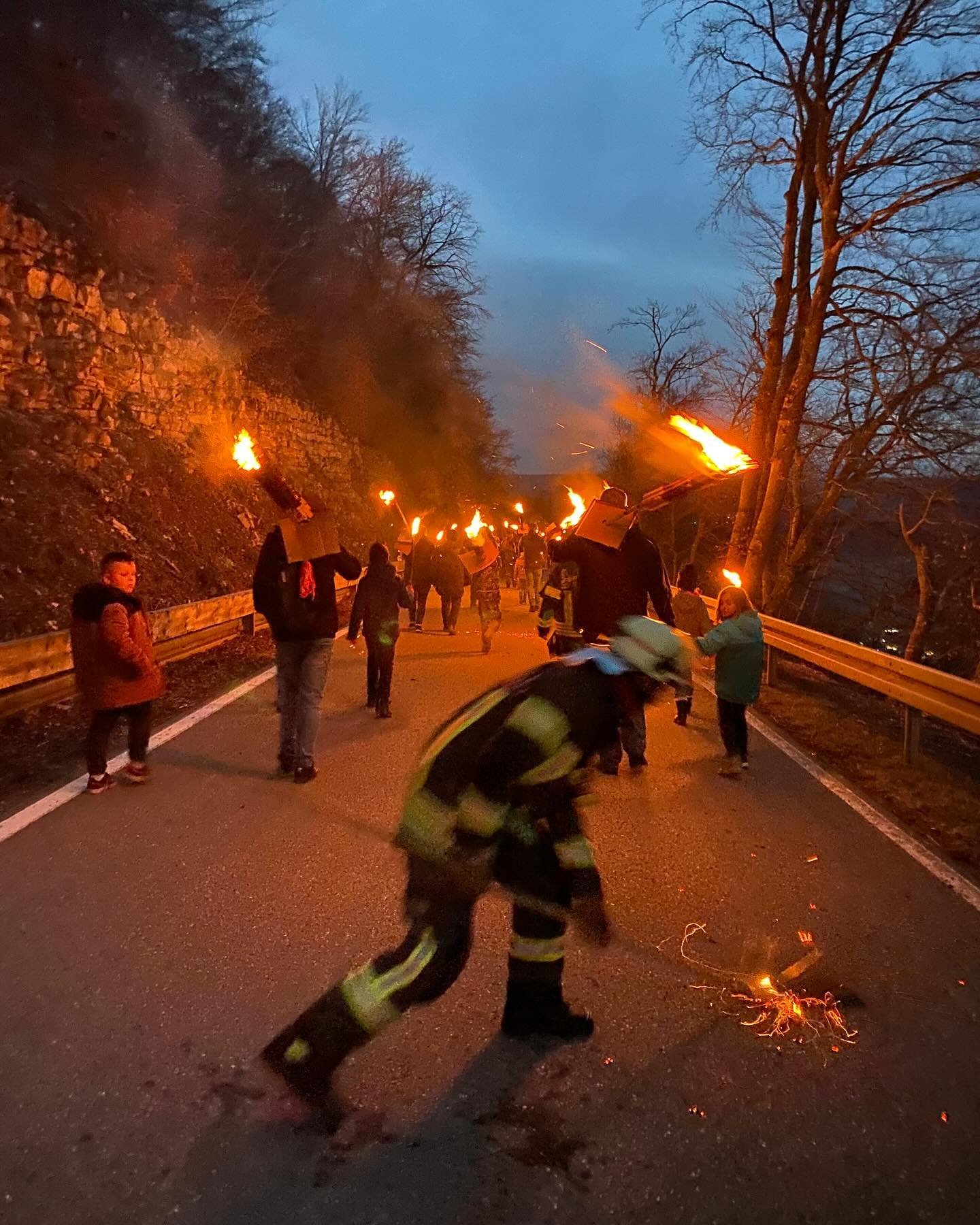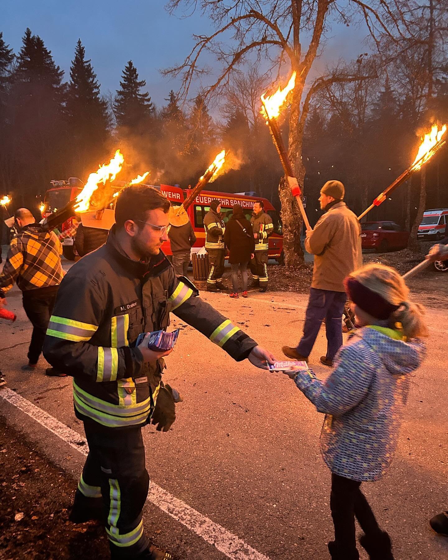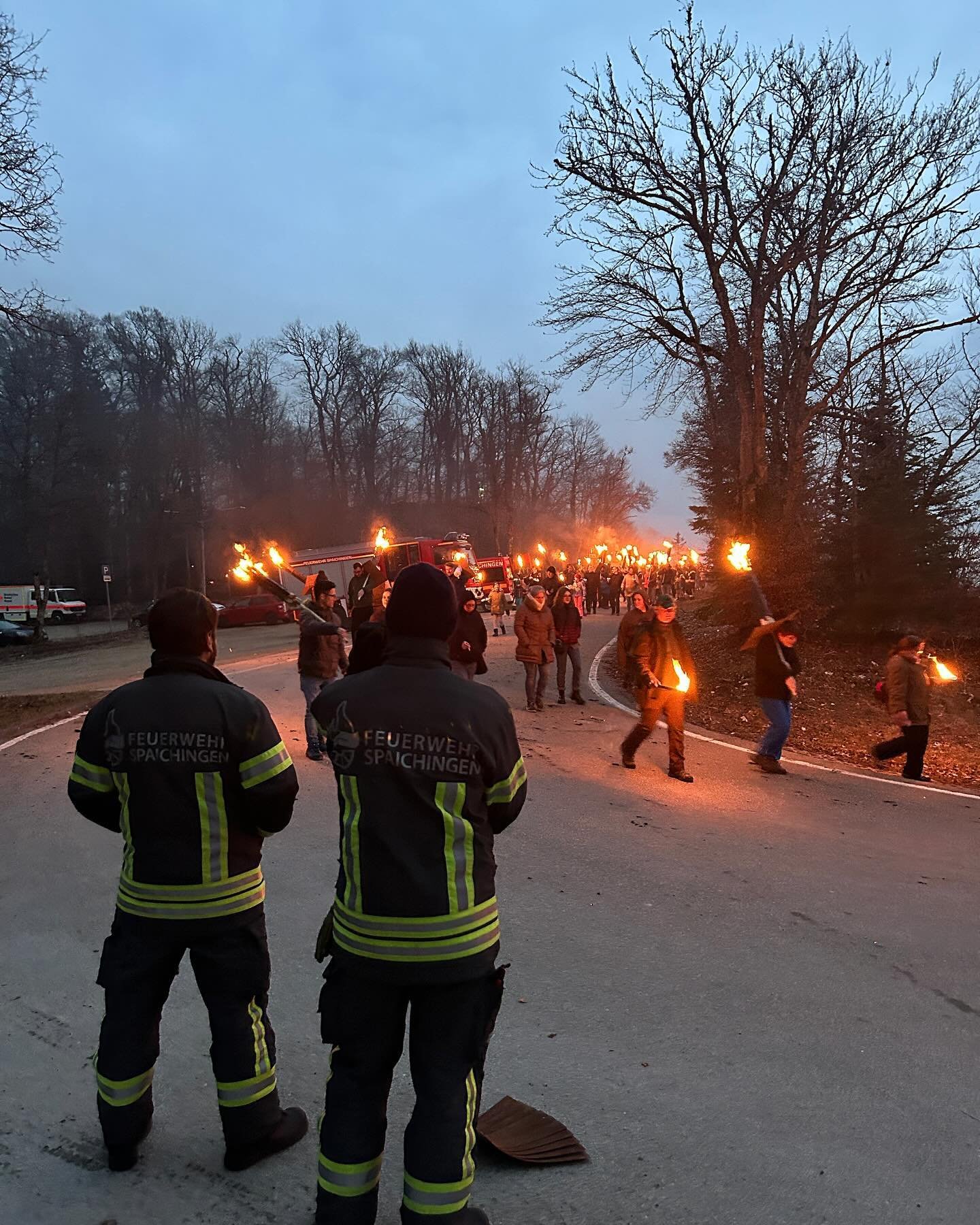 Der Fackelzug vom Dreifaltigkeitsberg wurde bis zum Funkenfeuer durch die Feuerwehr begleitet. Im Bereich des Funkenfeuers unterstützte die Feuerwehr die Fackelträger, sicherte den Bereich ab und löschte kleinere Entstehungsbrände.