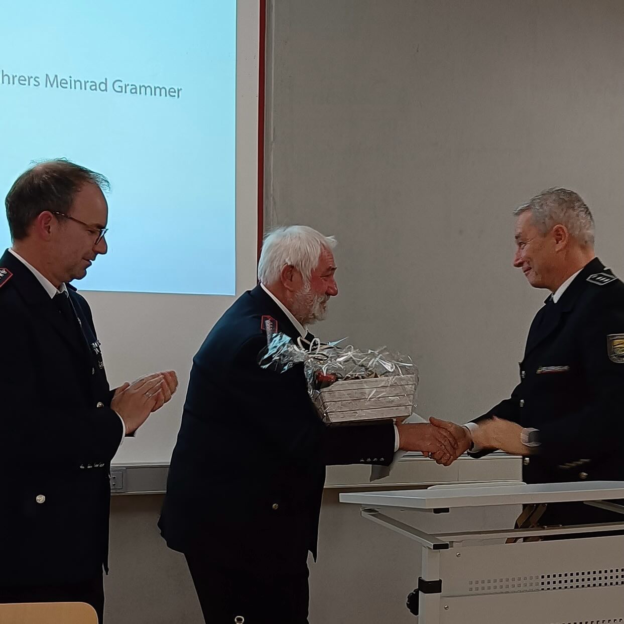 Letztmals berichtete der langjährige Kassenverwalter (Kassier) Meinrad Grammer über die wirtschaftlichen Verhältnisse im letzten Jahr, die Kassenprüfer bescheinigten ihm eine korrekte Kassenführung. Für seine über 35 Jahre währende, vorbildliche Tätigkeit dankten die Kameraden ihrem „Menne“ mit ausgiebigem Applaus und Präsent. Seit Anfang 2024 bekleidet Max Mattes als Nachfolger das Amt des Kassiers. Als Kassenprüfer für die kommenden fünf Jahre wurden von der Hauptversammlung Dietmar Geiger und Florian Schmid bestellt.