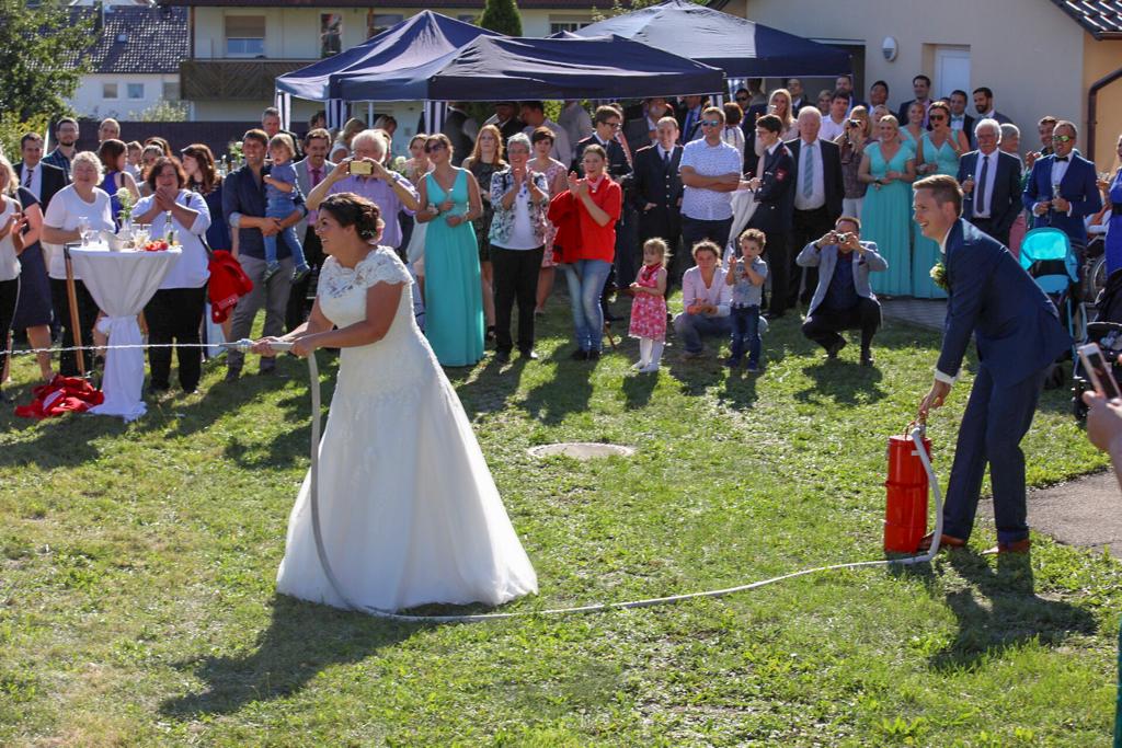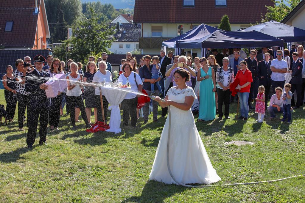 nicht nur das Wetter strahlte am vergangenen Samstag, den 15.09., als wir unseren Feuerwehrkamerad Tobias bei seiner kirchlichen Hochzeit mit seiner Michaela begleiten durften. Auch die obligatorische Drehleiterausfahrt sowie die anschließende Löschprüfung wurden mit Bravour bestanden. Die Feuerwehr Spaichingen wünscht dem glücklichen, jungen Brautpaar auf ihrem weiteren gemeinsamen Weg aufs herzlichste nur das Allerbeste.