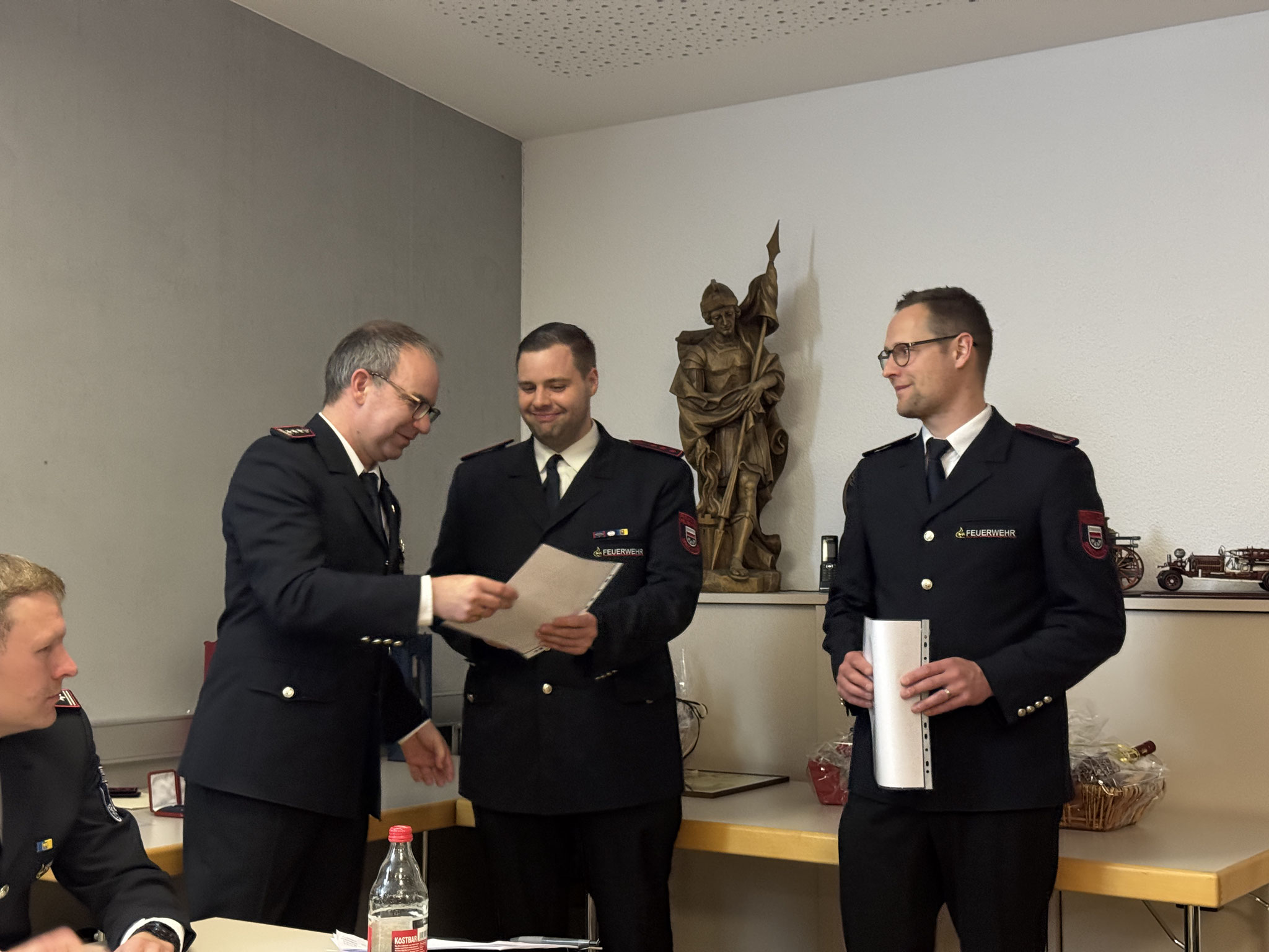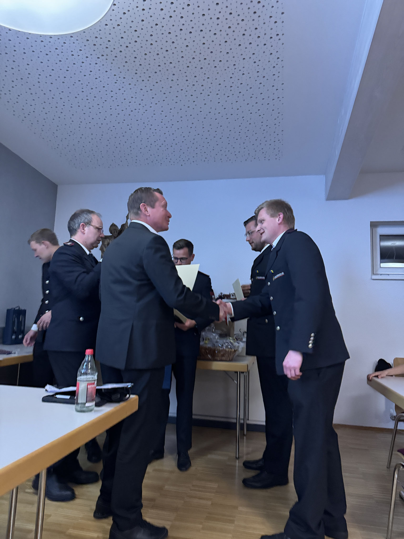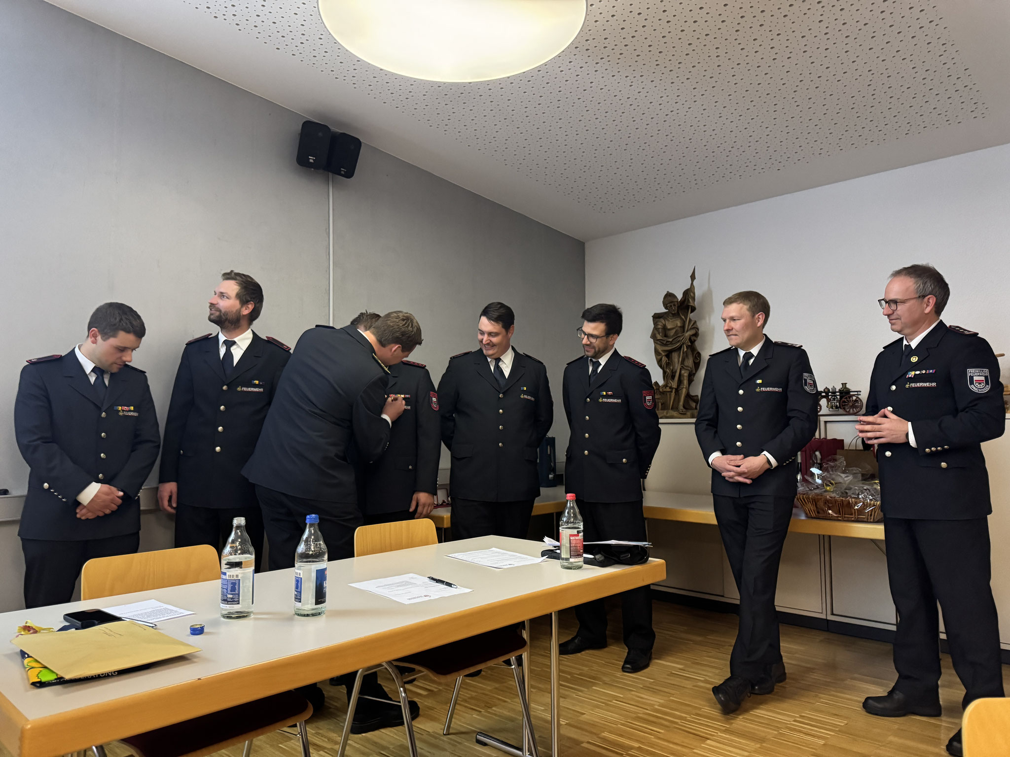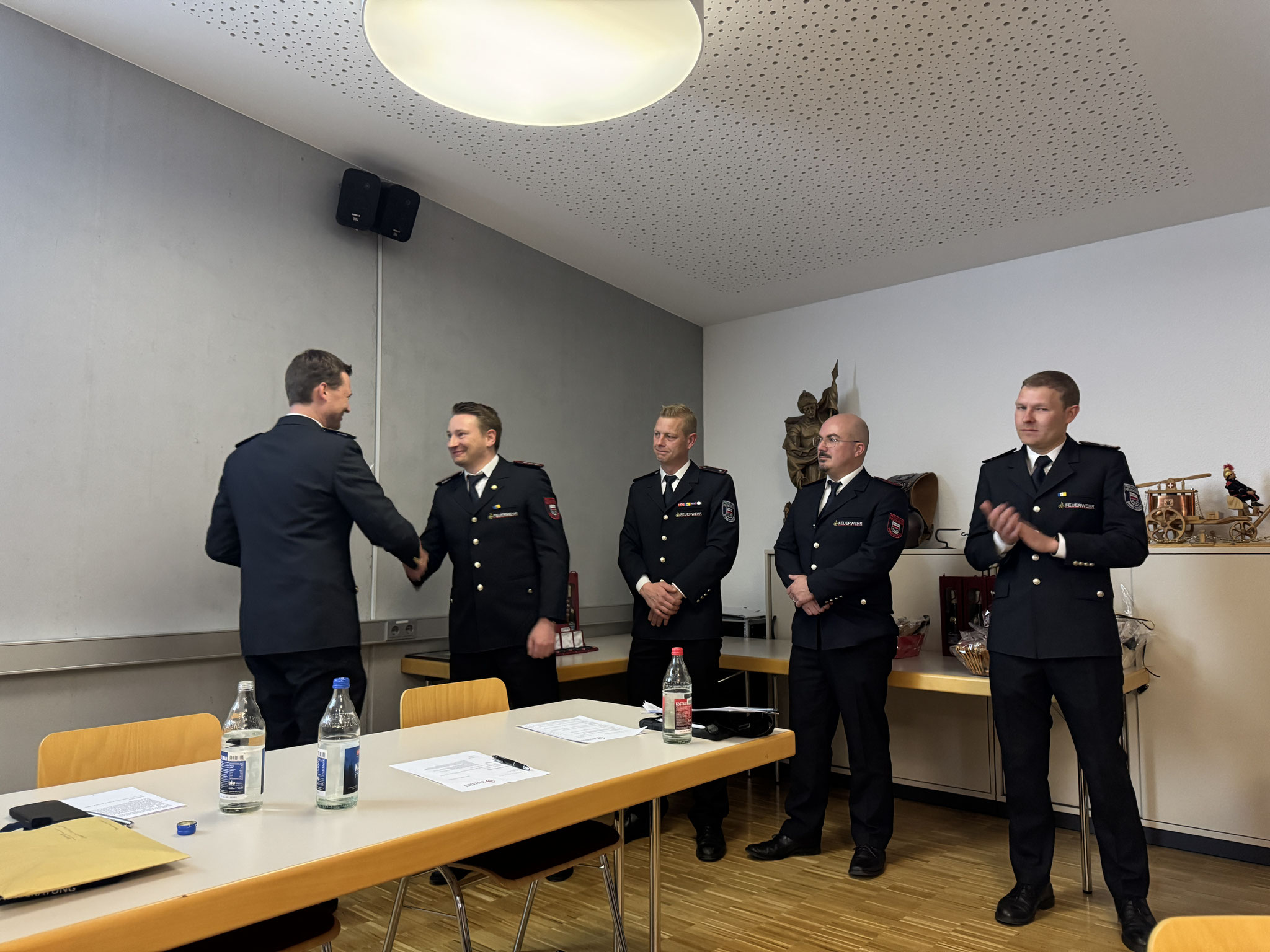 Der Bürgermeister übernahm außerdem die anstehenden Beförderungen von einigen Feuerwehr-Mitgliedern.