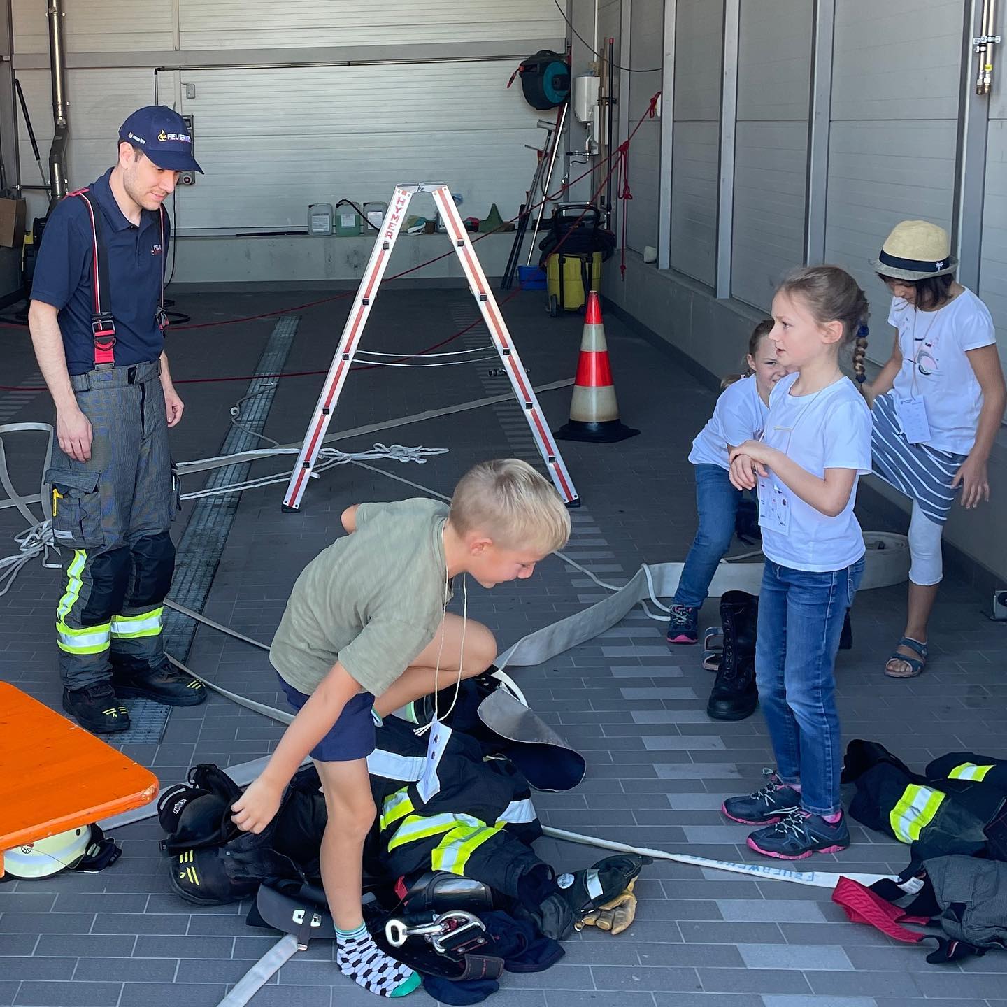 An neun Stationen durften sich die Kinder eigenständiges Bewegen, um die Feuerwehr und deren Besonderheiten spielerisch und spaßig kennenzulernen. Selbstverständlich durfte hierbei auch die Fahrt mit einem