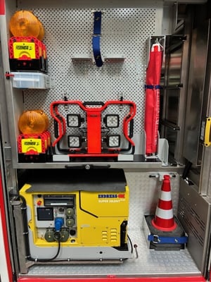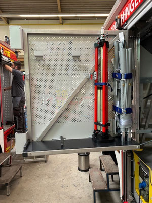 Ausbau des Fahrzeugs und des Aufbaus durch die Fa. Schlingmann, ebenso Montage der Gerätelagerungen. |