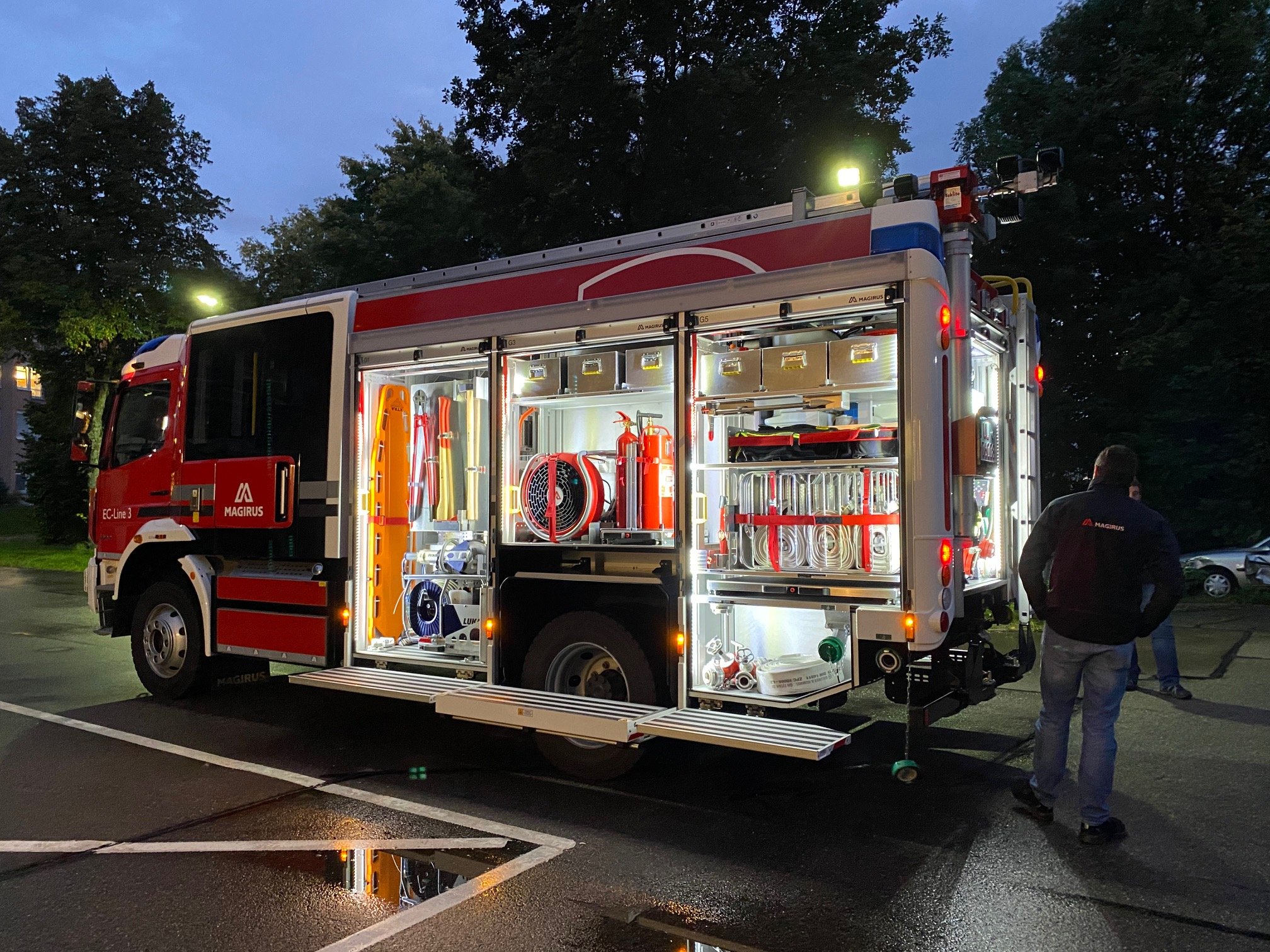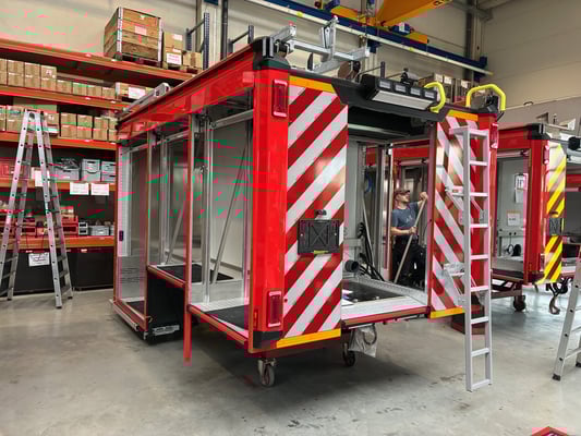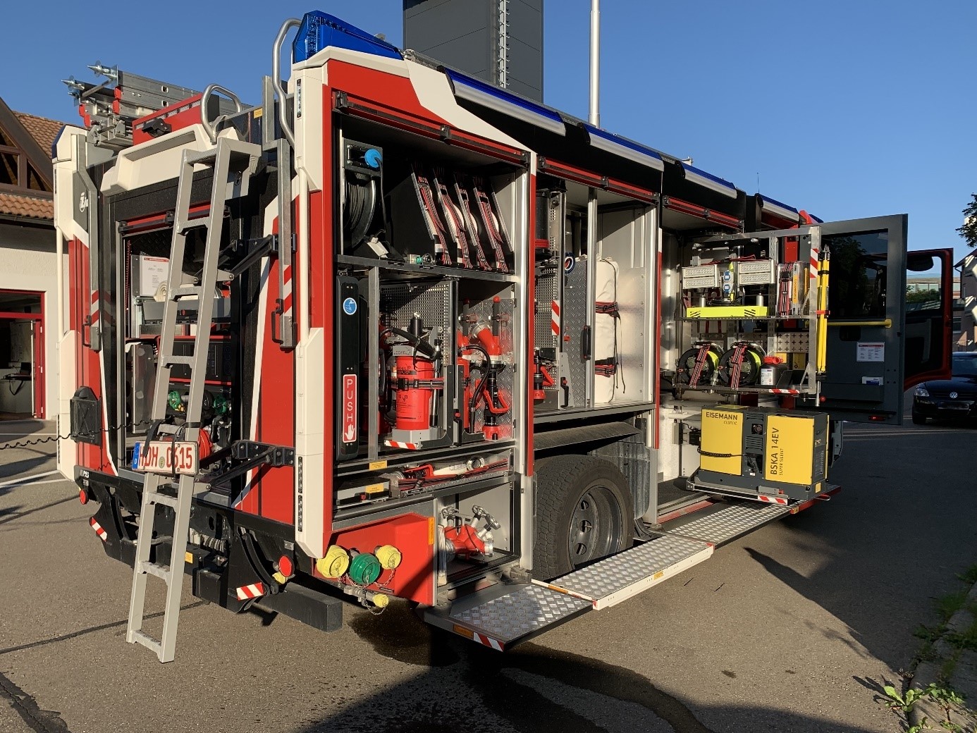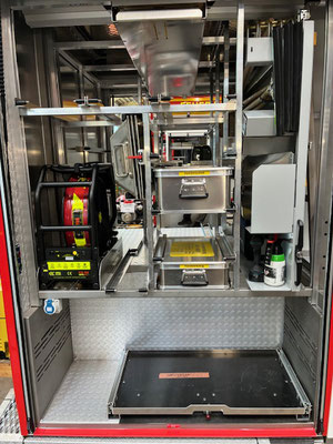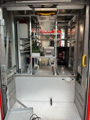 Zuletzt wurden Anpassungen an den aktuellen Stand der Digitalfunkeinführung sowie andere notwendige Änderungen und Anpassungen an aktuelle Entwicklungen in das Projekt eingebracht. Der Aufbau des Fahrzeugs befindet sich derzeit in der Lackierung. Hiernach erfolgt dessen Ausbau und später die Hochzeit mit dem Fahrgestell. Es wird davon ausgegangen, dass die Auslieferung Ende 2025 erfolgen kann. Lieferung der feuerwehrtechnischen Beladung durch den Lieferanten, Fa. Barth an die Fa. Schlingmann. |