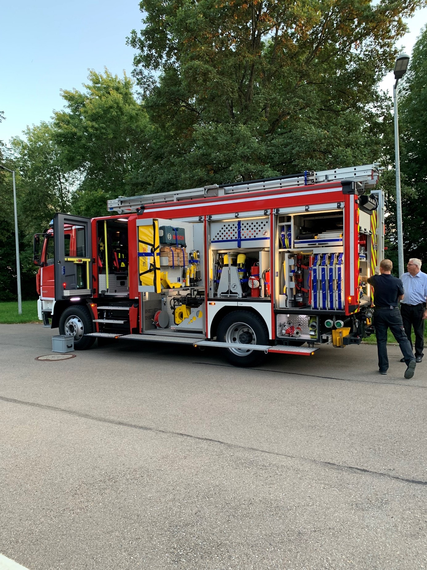 Am 9. September 2021 war die Firma Lentner zu Gast in Spaichingen. Der Aufbauhersteller aus dem bayrischen Hohenlinden präsentierte ein Fahrzeug, das in Villingen-Schwenningen bei der Abteilung Marbach seinen Dienst leistet. Dies ist ein LF 10, aufgebaut auf einem MAN Typ TGM 15.290. Auch hier konnte sich der Fahrzeugausschuss und im Anschluss die komplette Mannschaft einen Eindruck verschaffen.