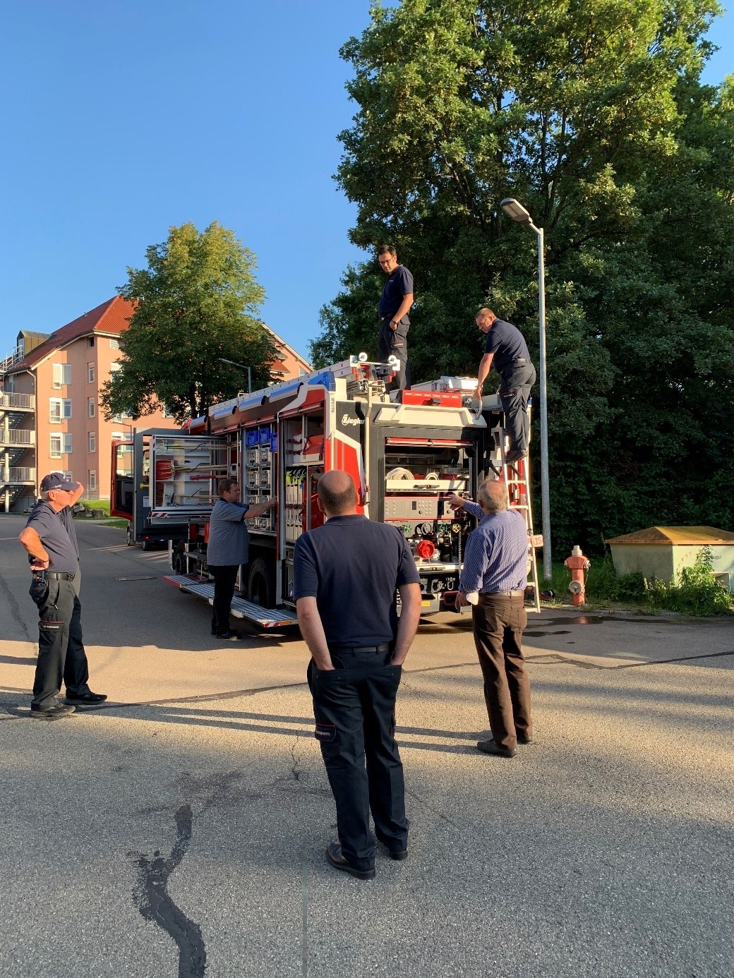 Am 04. Oktober war der Aufbauhersteller Wiss bei uns in Spaichingen zu Gast. Der Fahrzeugausschuss begutachtete das Fahrzeug nach vorangegangenen Ausführungen des Vertreters.