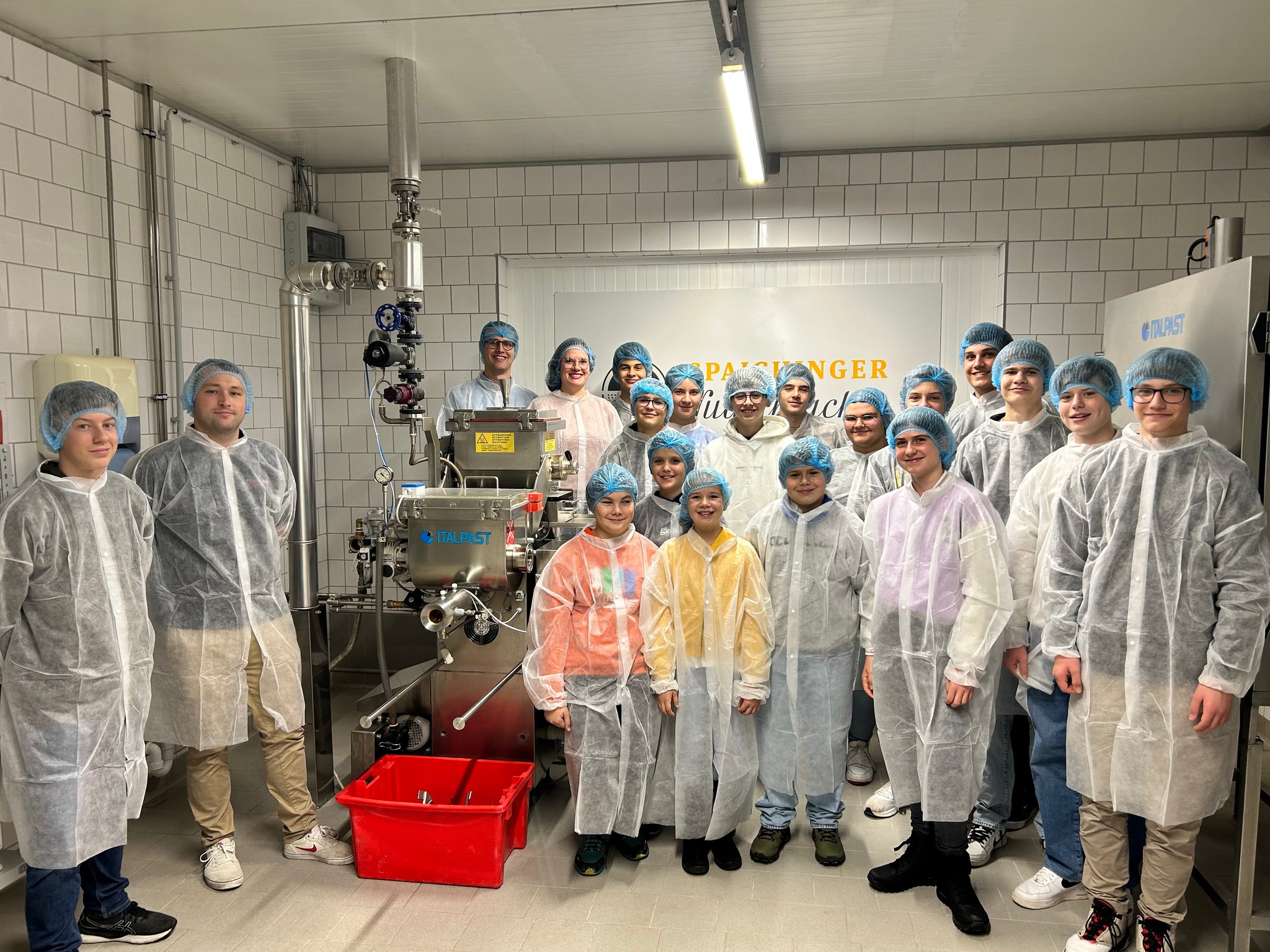 70 Tonnen Teigwaren pro Tag und weit über 300 Ausformungen aus verschiedenen Rohstoffen werden in Spaichingen produziert. Für die Jugendlichen besonders interessant war auch der Einblick in das 2023 errichtete und voll automatisierte Hochregallager welches Platz für 9.000 Paletten über mehrere Ebenen bietet. Das voll automatisierte Ein- und Auslagern mittels Satelliten-Technologie war ein echtes Highlight und konnte aus der Nähe betrachtet werden.
